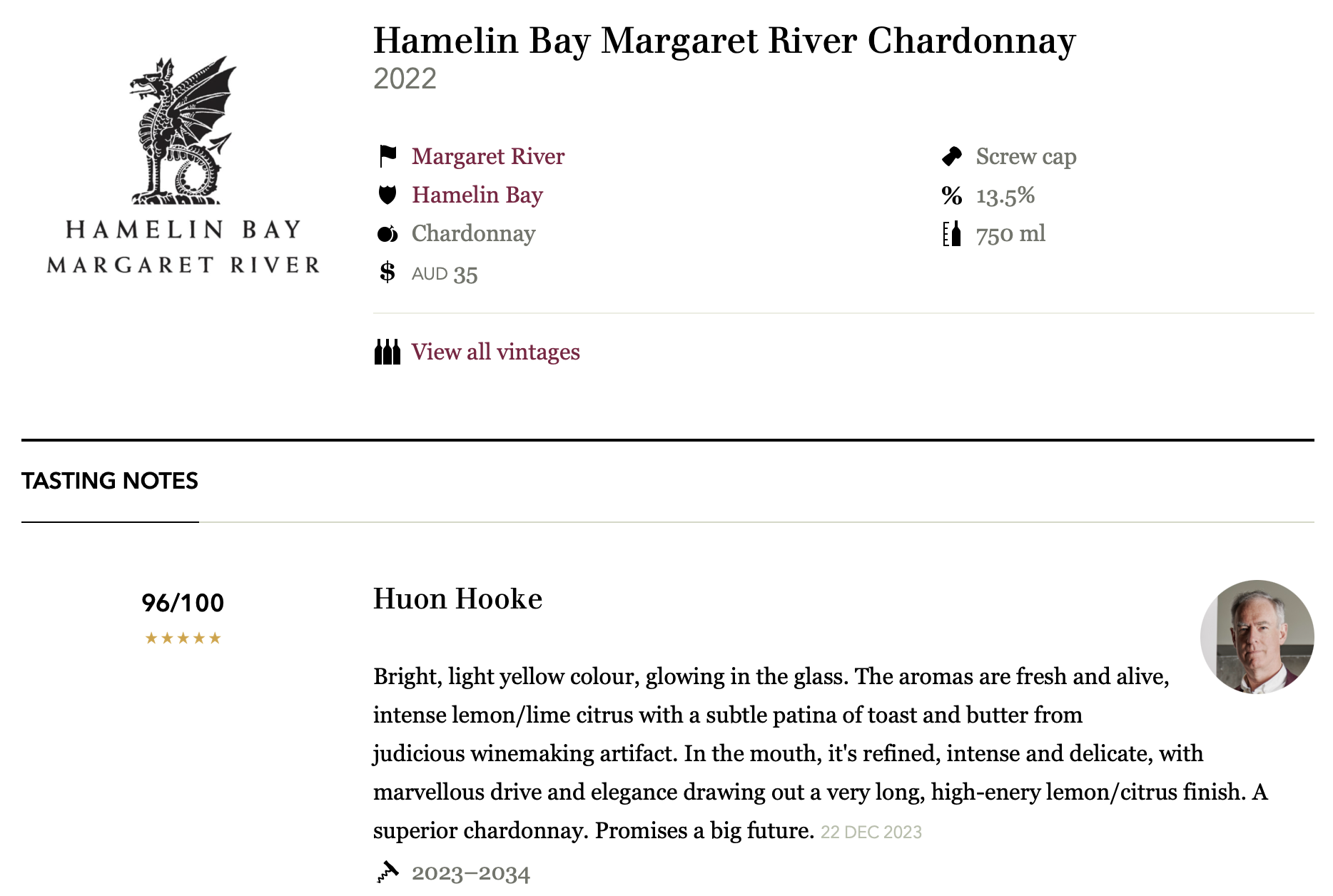 Hamelin Bay Chardonnay 2022 - 96 Pts, The Real Review Rated Top 3 Margaret River Chardonnay Blair HillMarch 3, 2024 Facebook0 0 Likes